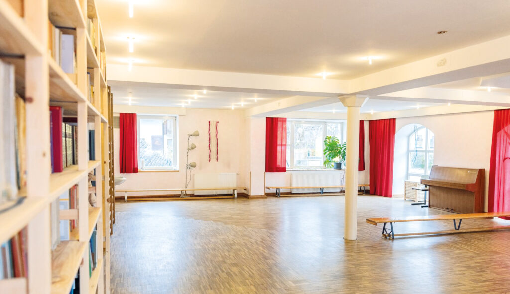 Bisher stehen uns im Erdgeschoß eine große Aula/Raum und eine Küche/Lernraum mit zwei Toiletten und einer Garderobe zur Verfügung. Im ersten Stock haben wir drei weitere Lern-Räume und eine kleine Teeküche sowie einen Büroraum.